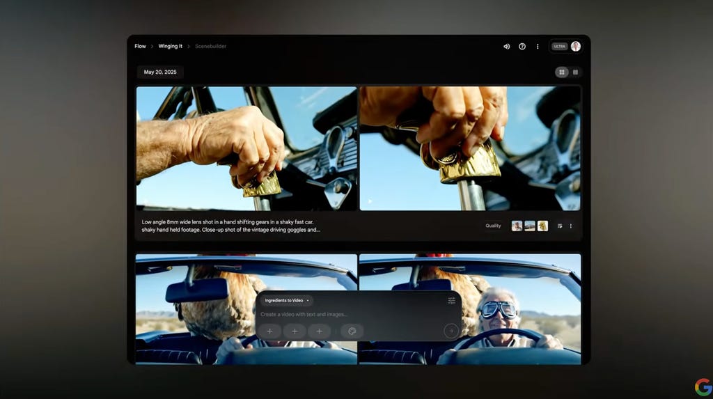 Google新视频生成工具Flow正在运行。Google/Screenshot by Joe Maldonado/CNET