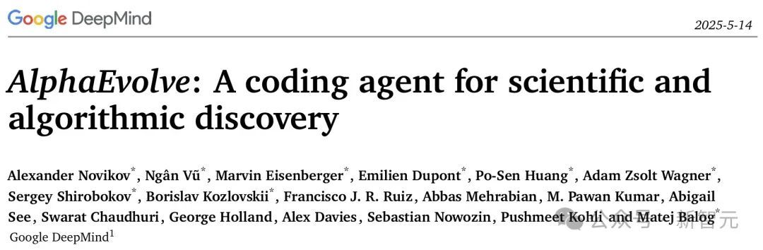 论文地址:https://storage.googleapis.com/deepmind-media/DeepMind.com/Blog/alphaevolve-a-gemini-powered-coding-agent-for-designing-advanced-algorithms/AlphaEvolve.pdf