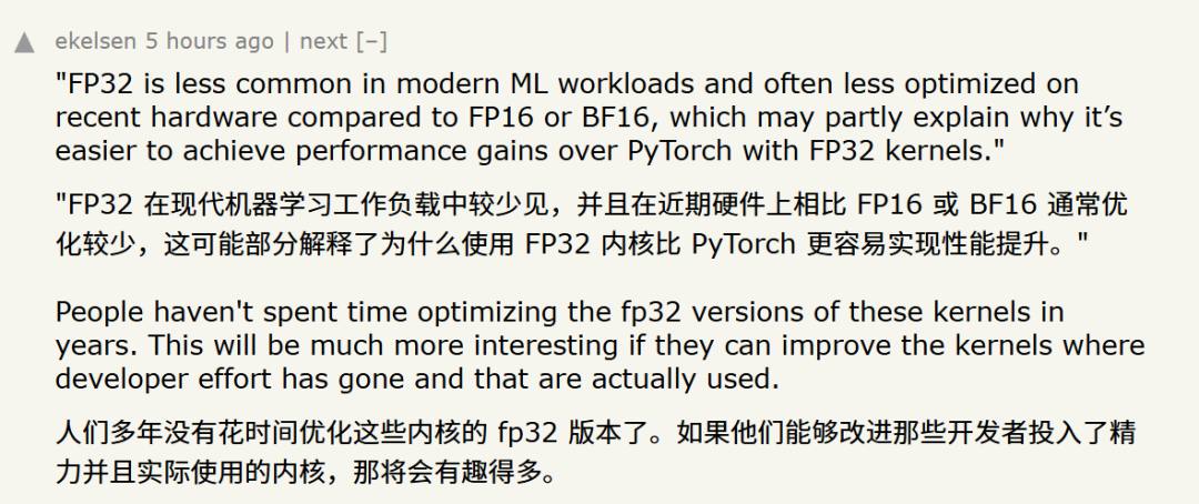 比如为什么使用FP32内核会比PyTorch更容易实现性能提升,理由就相当有趣。