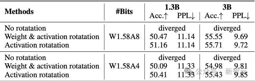 另外,在Hadamard变换对不同模型尺寸(1.3B和3B)影响的实验(见表5)中,研究者发现: