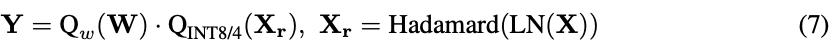 这显著减少了离群值数量,使其更适合进行4位激活量化(INT4)。