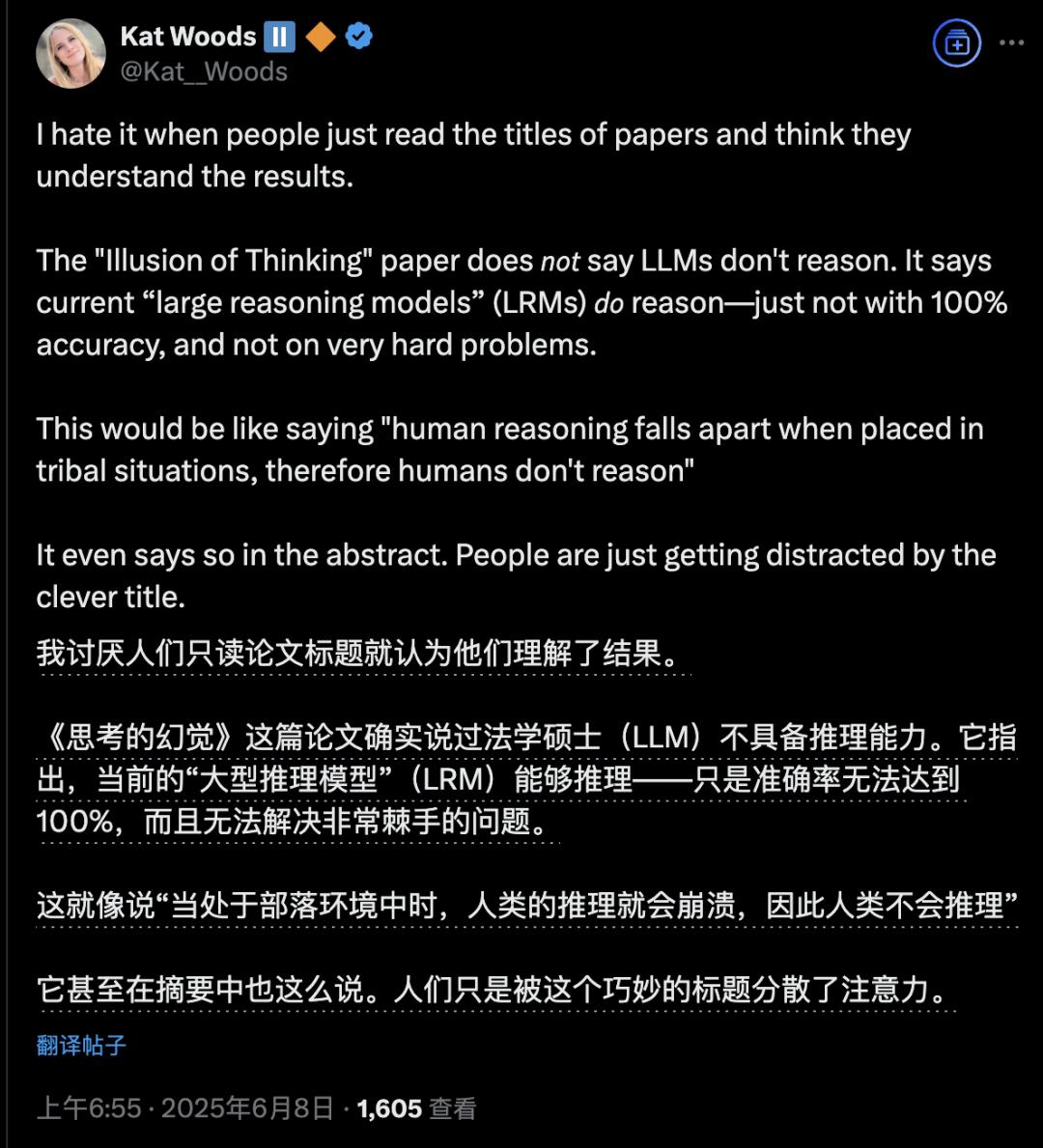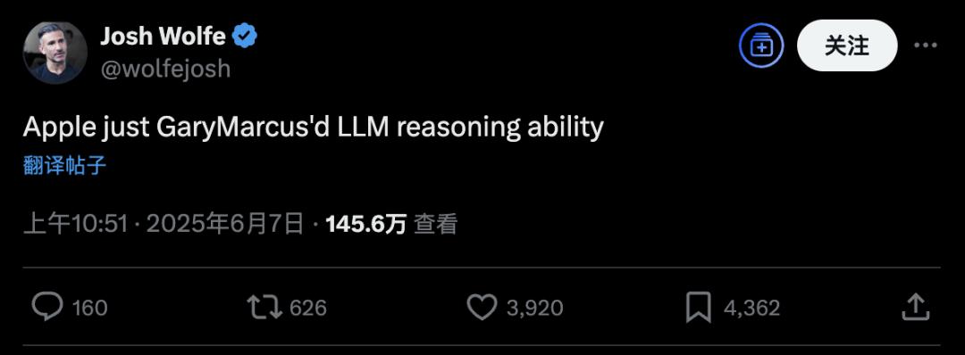 有人总结到:苹果刚刚当了一回马库斯,否定了所有大模型的推理能力。