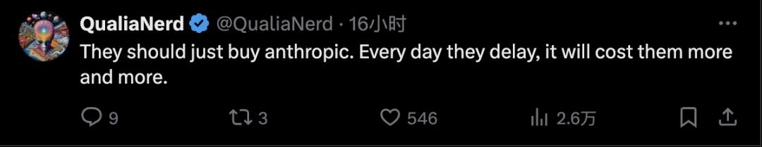 还有人建议苹果要不直接买下Claude背后的公司Anthropic算了,每拖一天都在变贵。