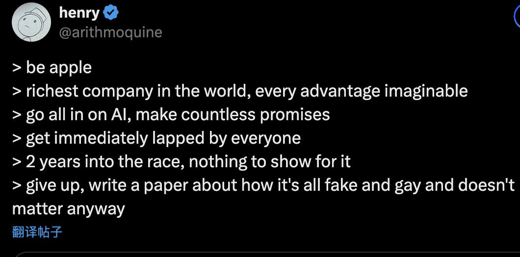 暂时放下学术上的争议,苹果在大模型上的进展确实不尽人意。