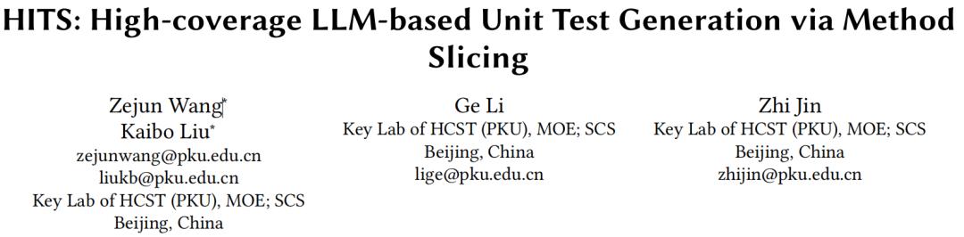 相关论文《HITS: High-coverage LLM-based Unit Test Generation via Method Slicing》近期被 ASE 2024(at the 39th IEEE/ACM International Conference on Automated Software Engineering)顶会接受。