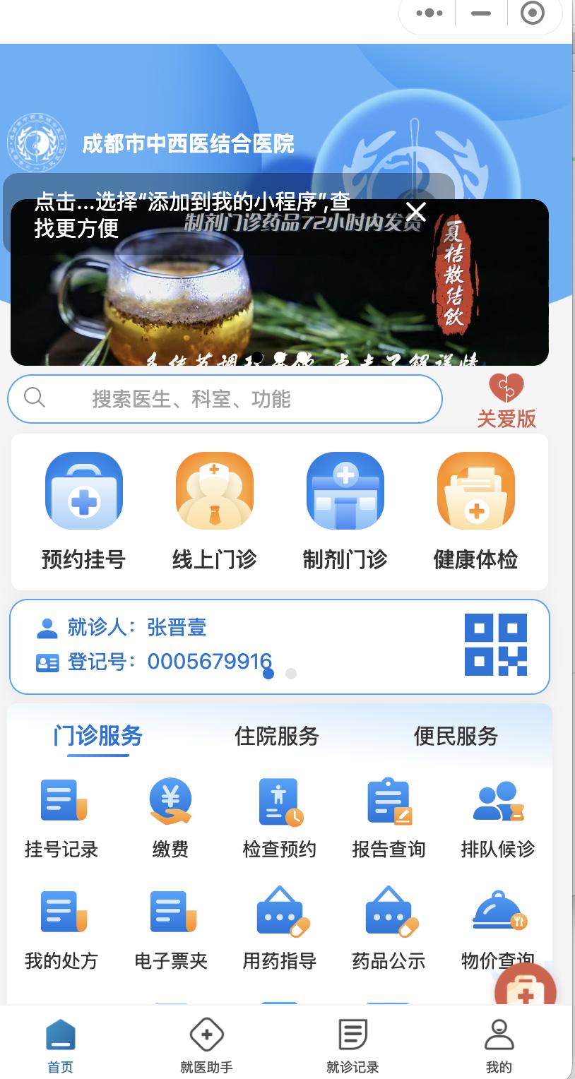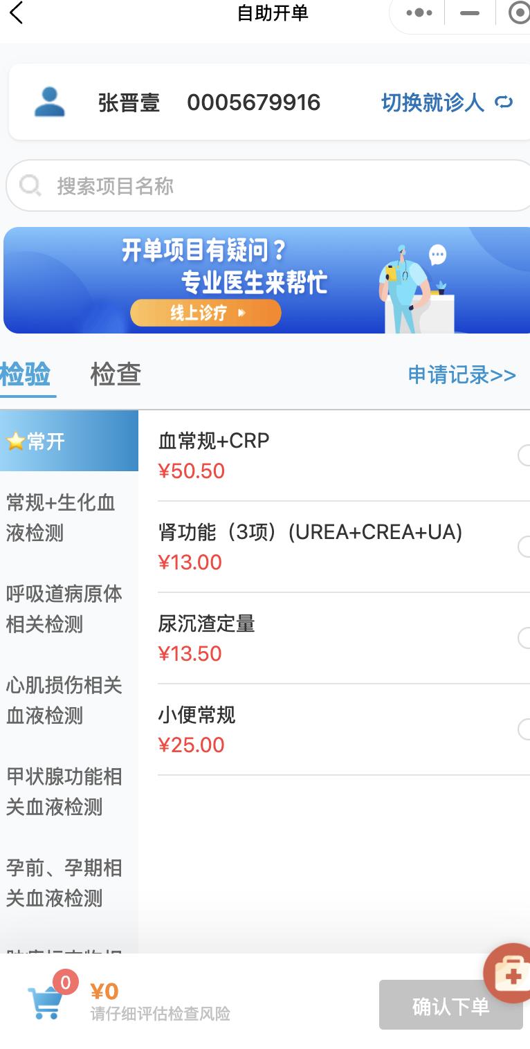 有了推荐的检测类目之后,接下来我便开始登录微信小程序,去了离家最近的成都市第一人民医院,现在国内的三甲医院,几乎都有线上医院门诊,用户可以在线上直接与线上医生挂号就诊或者直接自己开检查。