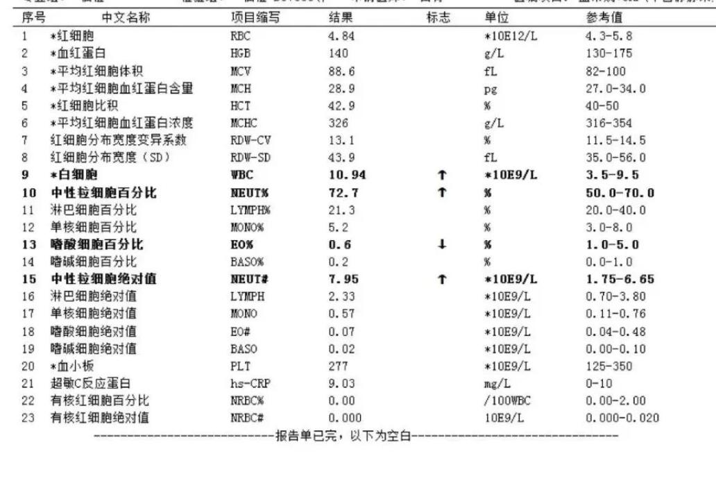 化验单结果