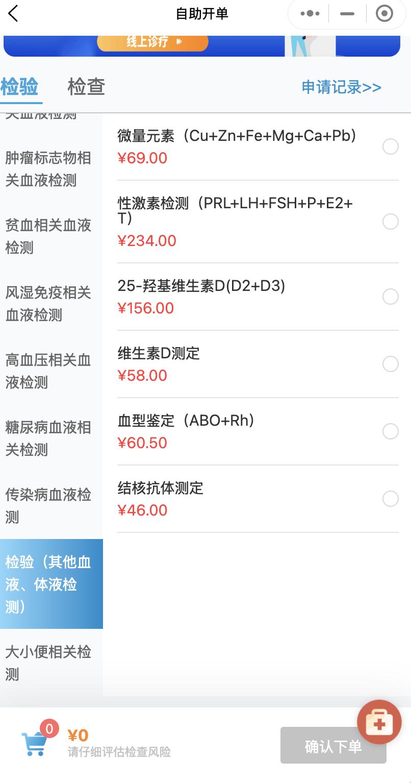 通过依靠AI大模型,我第一次在没有挂任何门诊号,也没有找任何医生的情况下,独立开设了检查。如下是成都市第一人民医院的自主检查列表,可以看到有非常多类型的检查,你自己勾选即可。