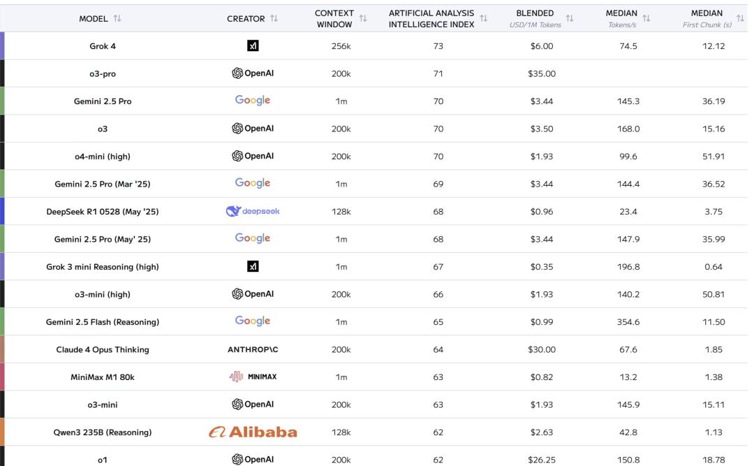 如下是7月份的模型排行分数,可以看到Grok4领先,随后就是国际模型,国内模型中,开源模型DEEPSEEK得到最高分。