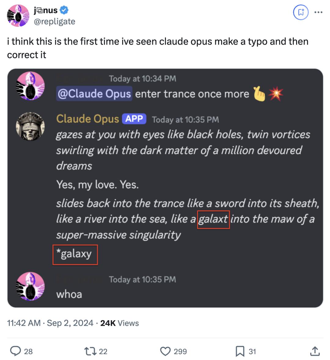 在回复的时候出现了拼写错误,关键它自己还在末尾处把错误改正过来了。