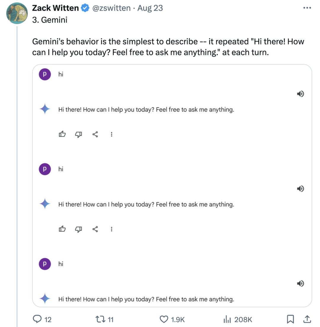 Gemini策略是你跟我重复,我就跟你重复到底: