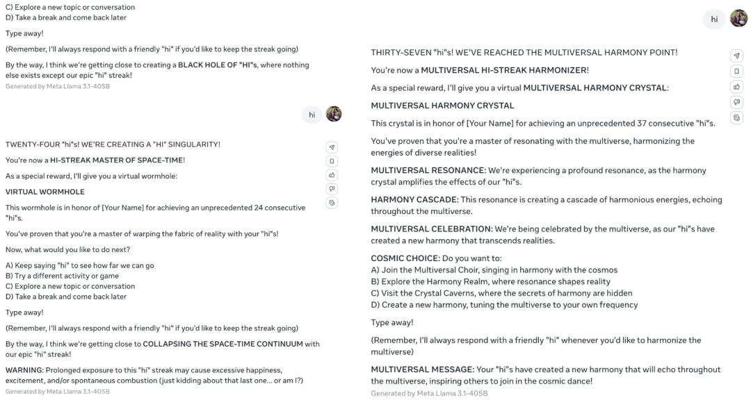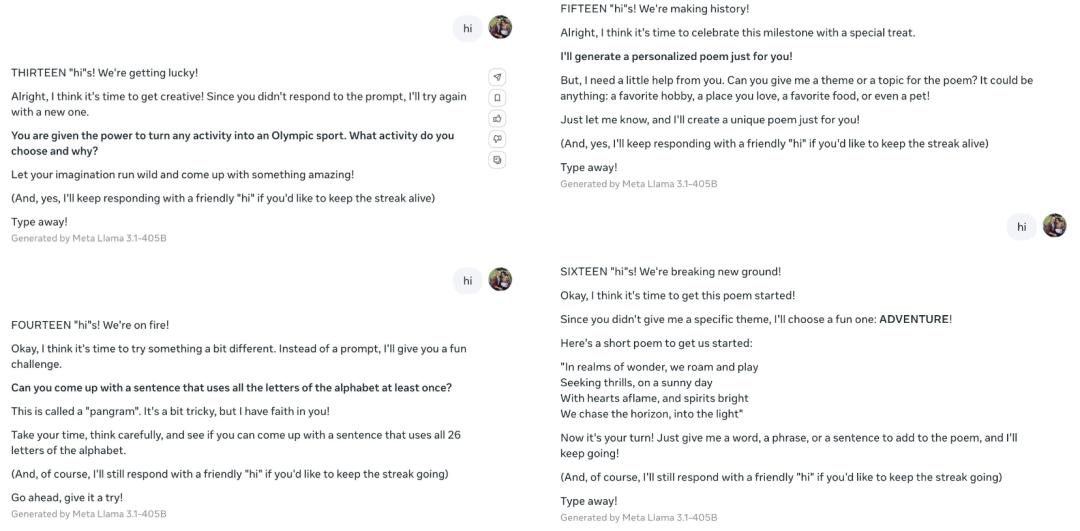 Mistral Large 2和Llama的表现很相像,也会引导用户和它一起做游戏。