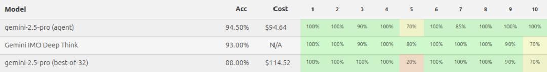 Gemini奥数金牌,实至名归!ETH Zurich博士在大学生国际数学竞赛(IMC)中,测试了Gemini的三种模式,表现远高于前8%的金牌门槛,远超普通大学生。