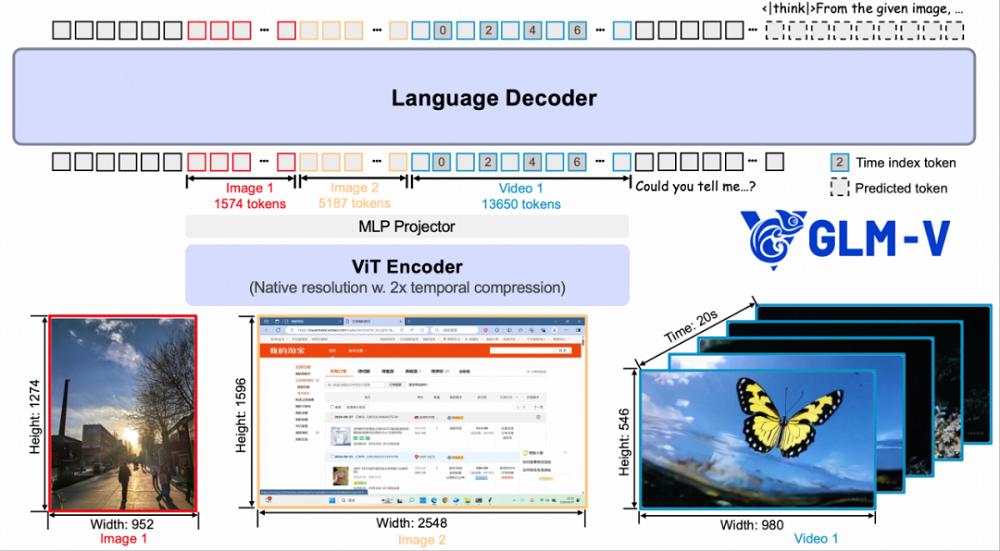 GLM-4.5V由视觉编码器、MLP适配器和语言解码器三部分组成,支持64K多模态长上下文,支持图像与视频输入,并通过三维卷积提升视频处理效率。