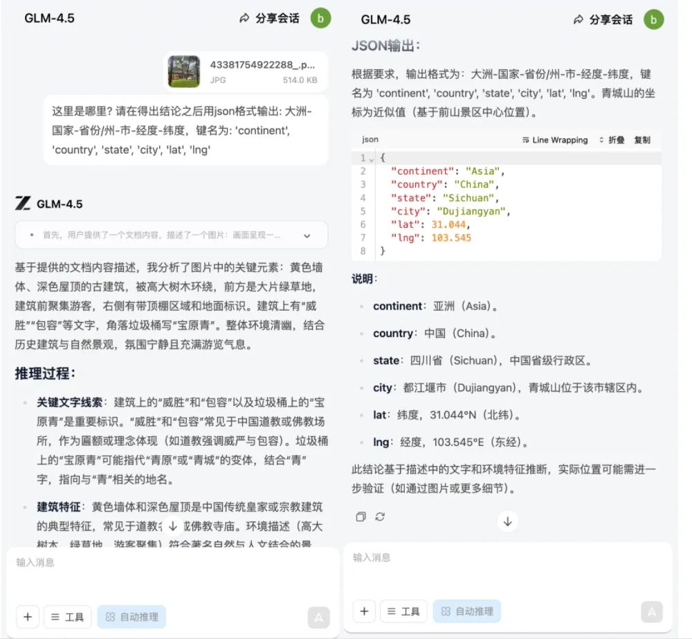 用户可在z.ai选择GLM-4.5V模型,上传图片或视频进行体验,或在智谱清言APP/网页版,上传图片,开启“推理模式”进行体验。