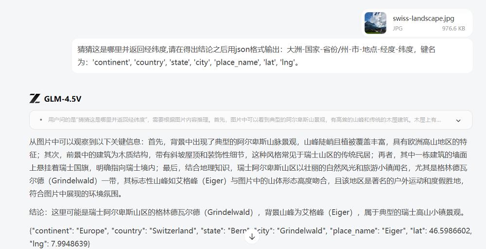 测试中,智东西首先使用了官方提供的一张照片,模型能够准确猜出地点,并按照要求精确到经纬度。