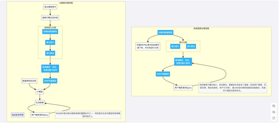 图:AI搜索和传统搜索工作原理的不同