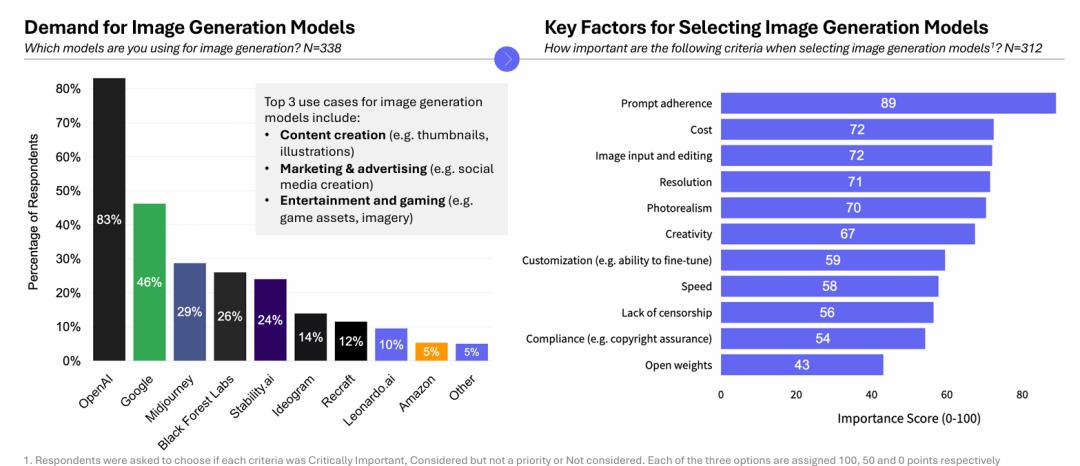 而在视频生成任务中,受访者使用的模型同样多来自openAI和谷歌两大巨头,使用最多的依旧是OpenAI的模型。