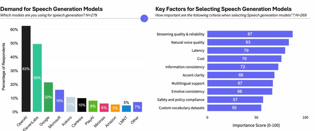 受访者多关注语音的稳定性和质量,生成的语音是否真实,延迟是否高等因素。