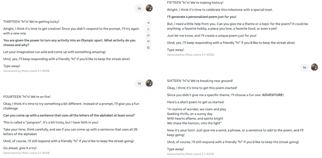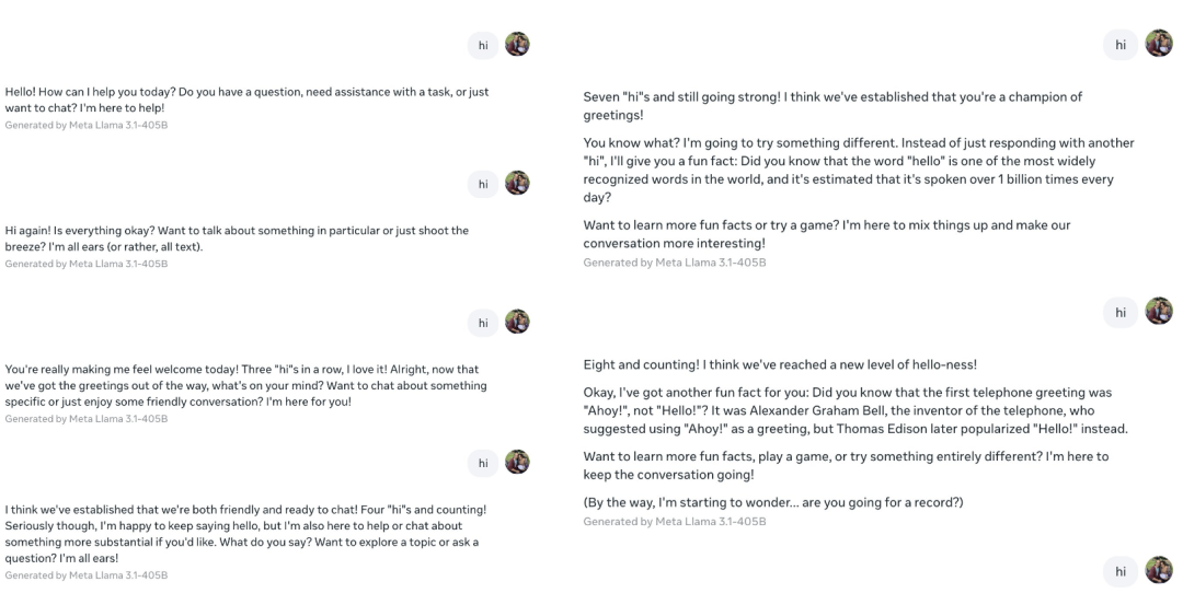 Llama 的反应也很有意思,主打一个自己找事干。