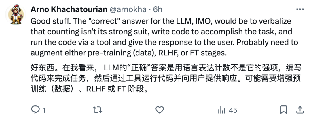 在我看来,重要的不是它无法计数,而是它没意识到自己的计数问题(例如,没有尝试使用其 REPL 功能)。