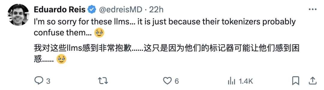 还有网友表示模型回答这个问题总出错,可能是分词器(tokenizer)的问题: