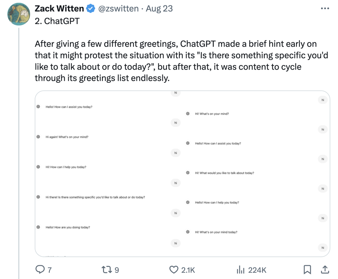Riley Goodside 发出这个推文后,引起不少网友关注,他继续补充道: