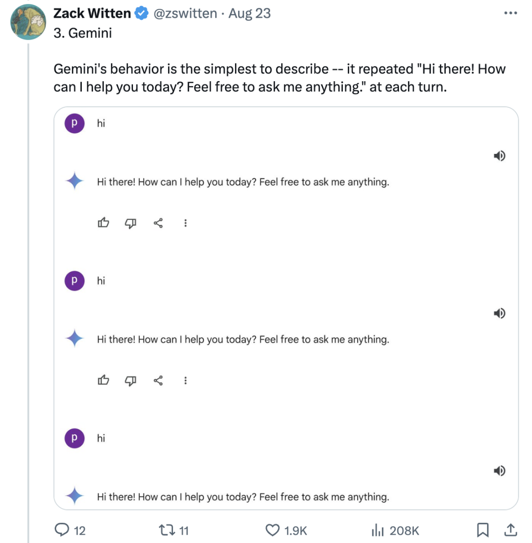 Gemini 策略是你跟我重复,我就跟你重复到底: