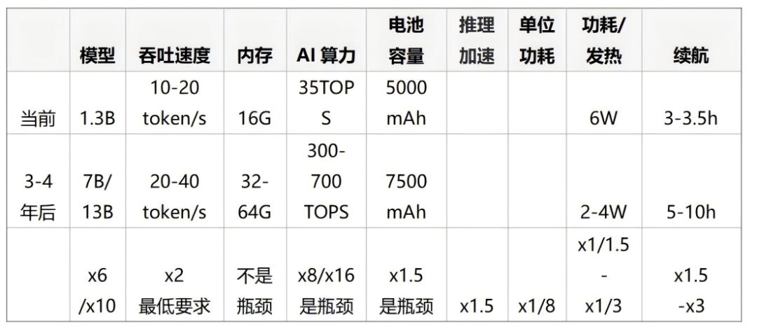 现状:目前没有大规模测试端侧模型推理的功耗;以游戏运行为benchmark,功率大约在4~7W,续航时间仅为3~4小时