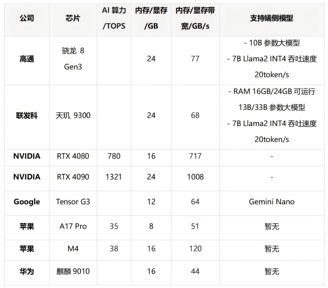 ●从技术的角度,端侧大模型不是孤立的技术,而是跟AI芯片(GPU/TPU等)、操作系统共同形成一个完整的技术体系。