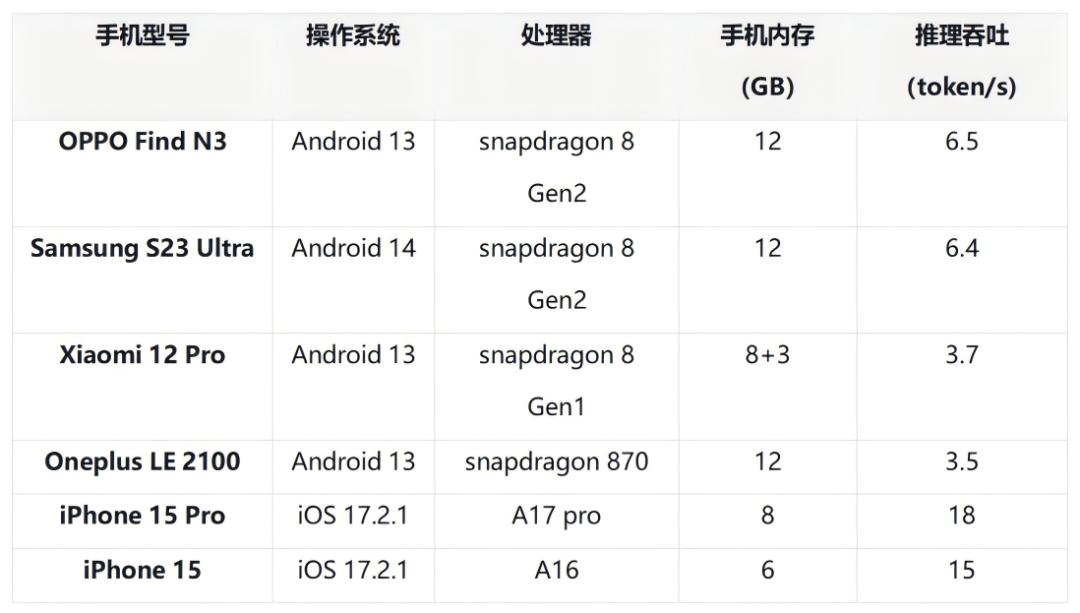 ●FP32精度下,1B模型占用~4GB内存,而推理运行需要更多内存,这对目前8~16GB的手机主流内存是有挑战的