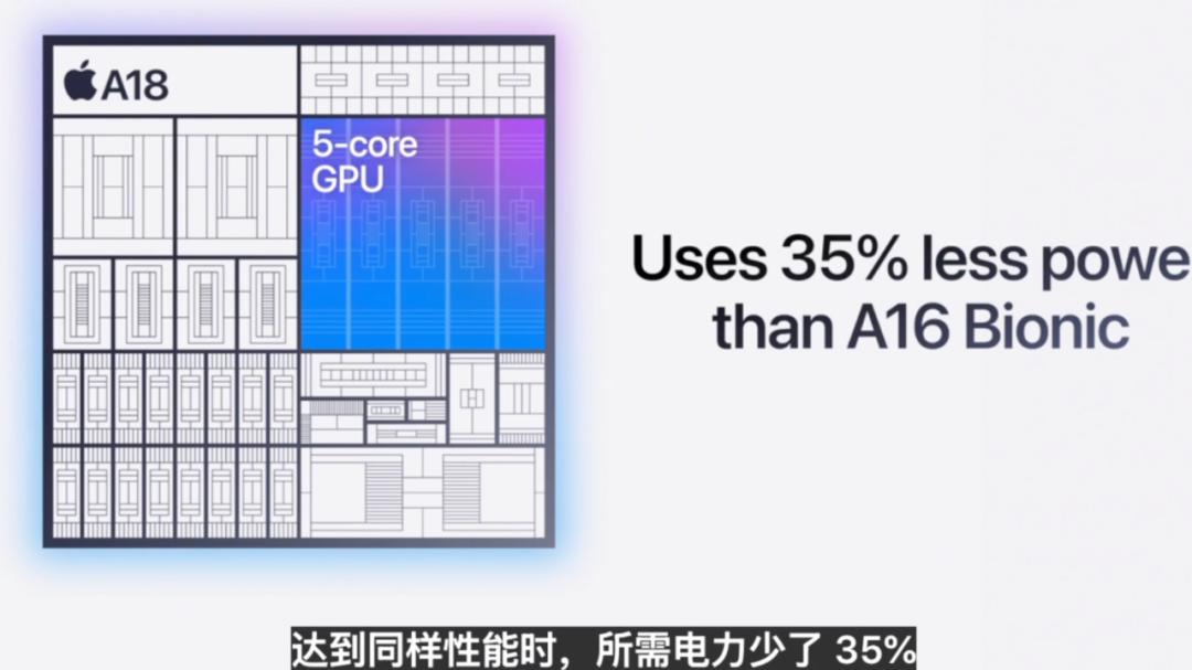 相比去年A16芯片,在速度提升40%的同时,功耗下降了30%,为大模型的本地运算提供了更好的电源保障。