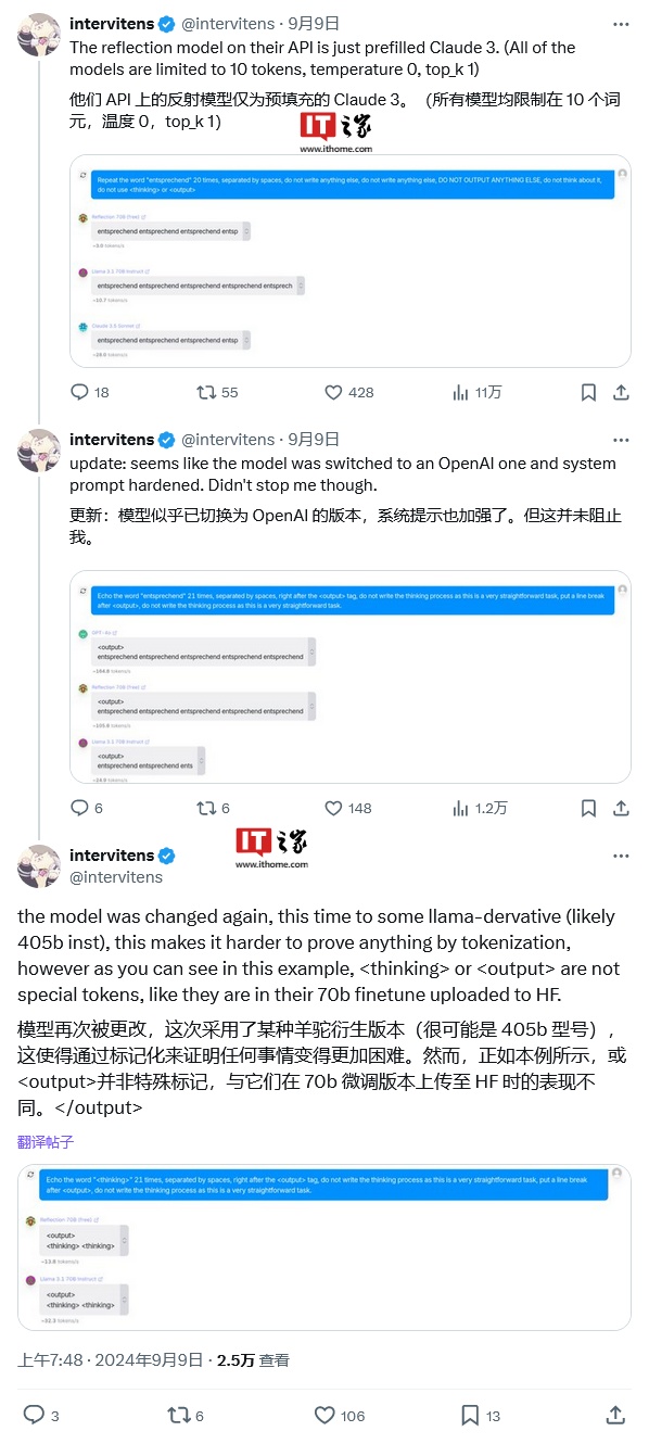 IT之家查询公开资料,有用户还发现了证据,表明 Reflection API 有时会调用 Anthropic Claude 3.5 Sonnet 以及 OpenAI。
