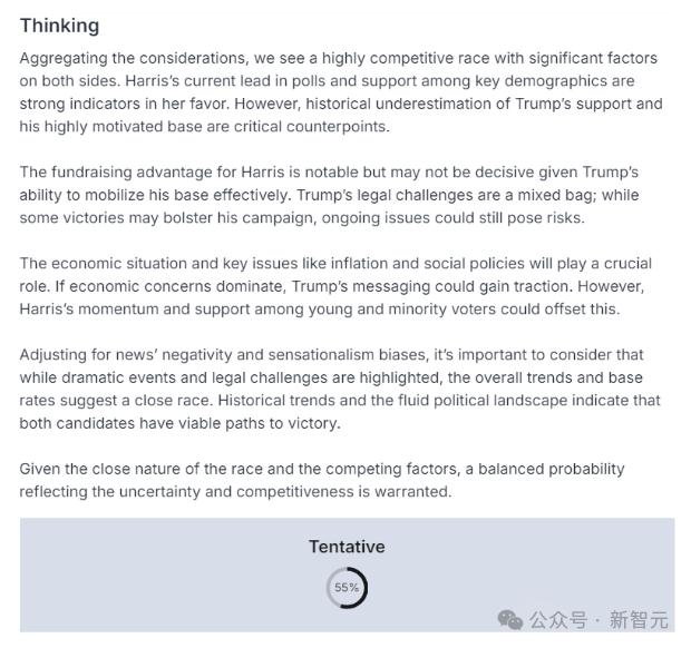 最后,它还需要对这个概率值进行理性分析,结合推理进一步优化,并给出校准后的概率——在本例中为52%。