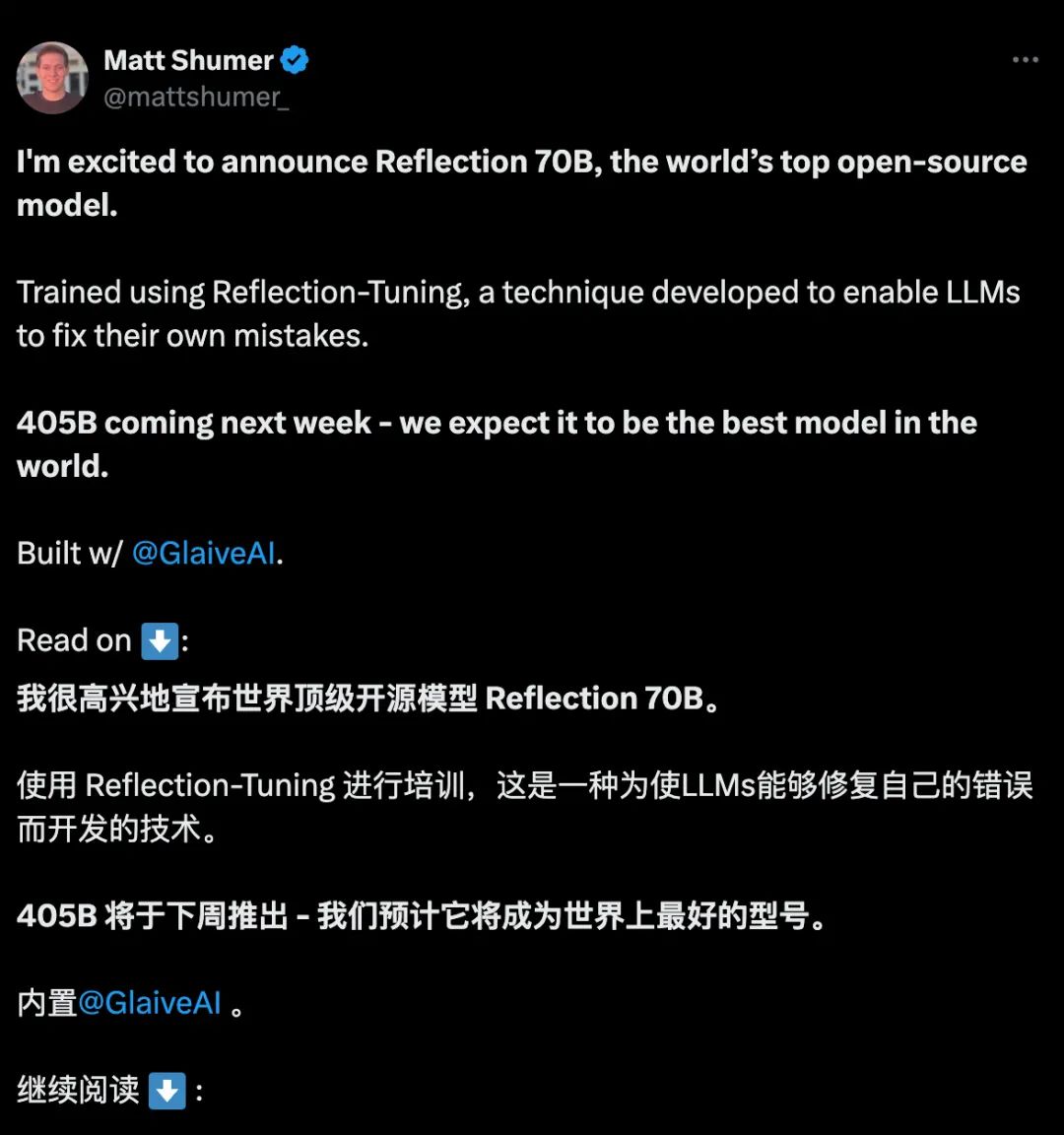 9 月 6 日,Reflection 70B 的出现,仿佛是个奇迹。它来自名不见经传的纽约初创公司 HyperWrite,却自封了「世界顶级开源模型」的称号。