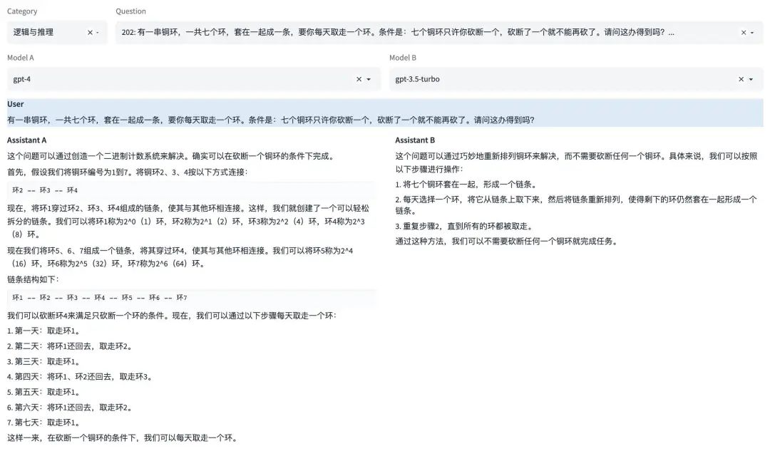 具体来说,我们可以在线向两个随机选择的匿名模型 A 和 B 提问,然后给两个答案投个票,更喜欢 A,更喜欢 B,平局,还是都不喜欢,这时候,我们才能看到 A 和 B 模型的真面目。