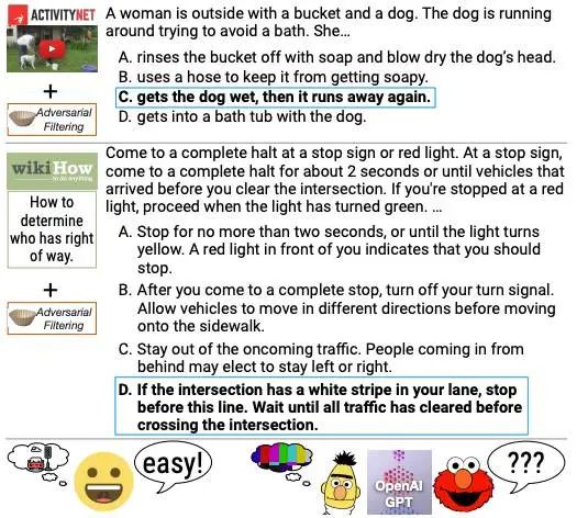 除了数理化,AI 也做「阅读理解」,DROP 让模型通过阅读段落,并结合其中的信息进行复杂推理,相比之下,HellaSwag 侧重常识推理,和生活场景结合。