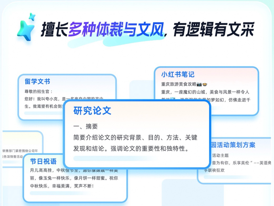 夸克表示,CueMe 针对不同细分体裁进行了充分的语料预训练,可支持上千种不同体裁的写作需求,包括研究报告、日常写作、课程论文、新媒体文案等等,并且还在持续扩展中。