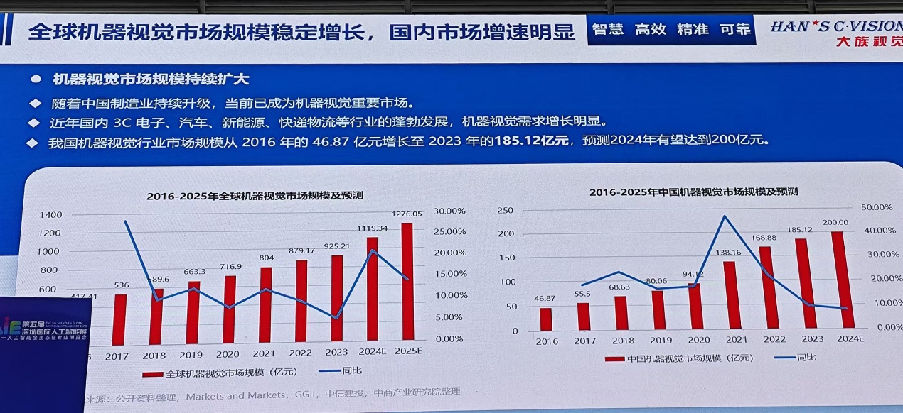 大族激光副总裁陈焱也说道,从全球领域来看,机器视觉的销售额虽然只有千亿级水平,但在实际应用场景中的作用不可小觑,机器视觉是智能制造的“眼睛”。