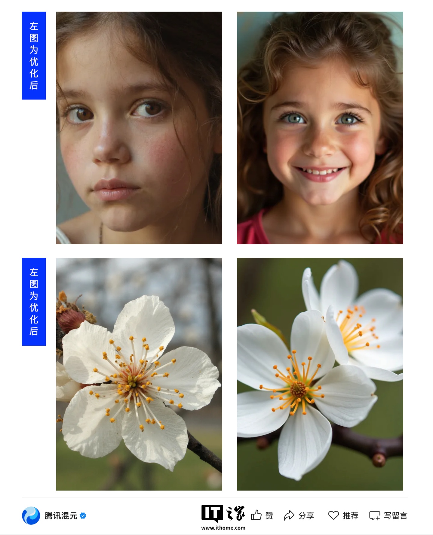 IT之家 9 月 17 日消息,腾讯混元今晚通过官方公众号发文介绍,其生图团队在 9 月 10 日发布了新研究 SRPO,主要提供文生图模型的强化算法,解决开源文生图模型 Flux 的皮肤质感“过油”问题,让人像真实感“提升 3 倍”。