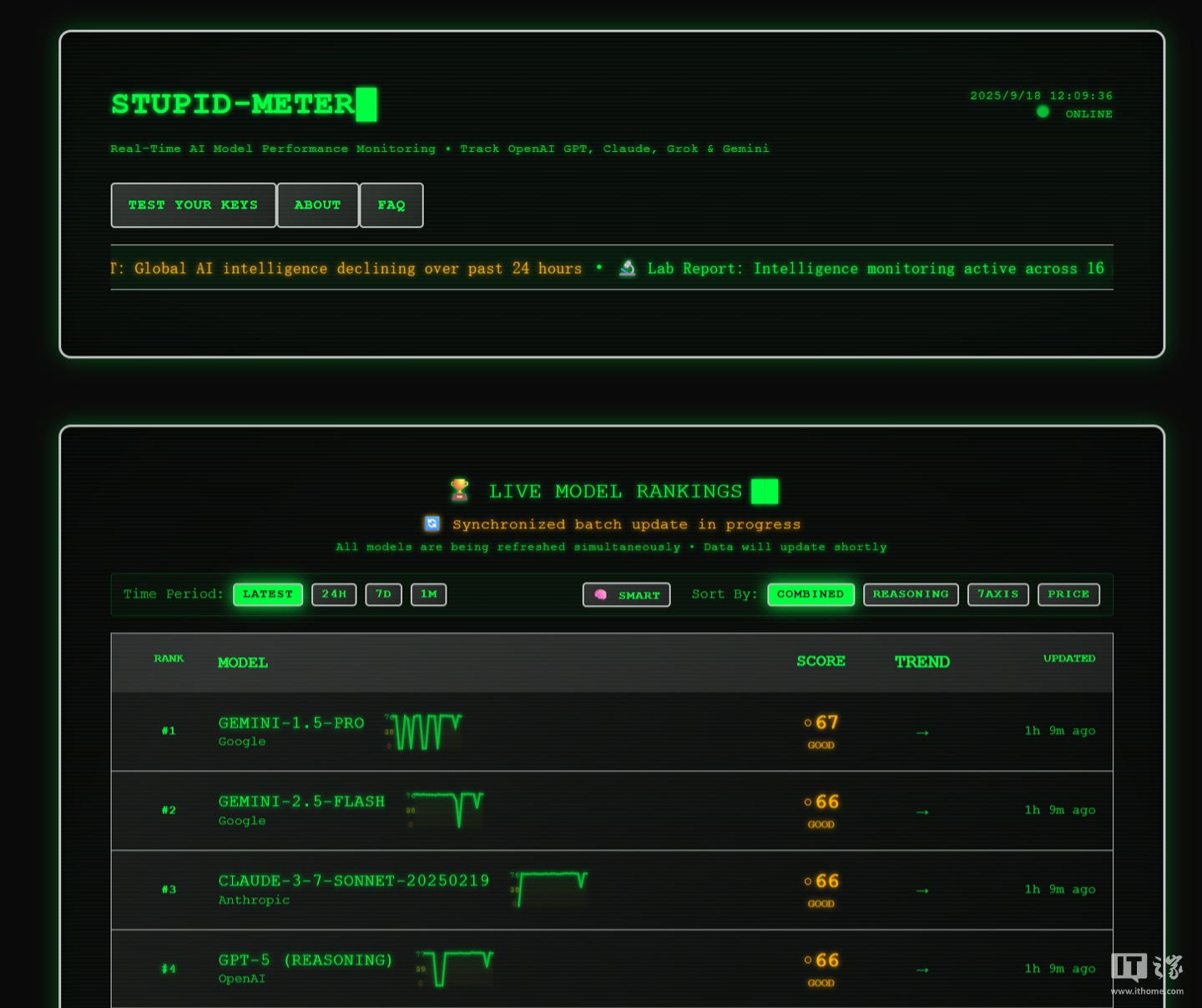 IT之家 9 月 18 日消息,程序员 ionutvi 今天发布了名为 AI Benchmark Tool 的 AI 评分工具,可衡量各大 AI 模型的“愚蠢程度”,帮助代码工作者选择最准确性最佳、更具性价比的 AI 工具。