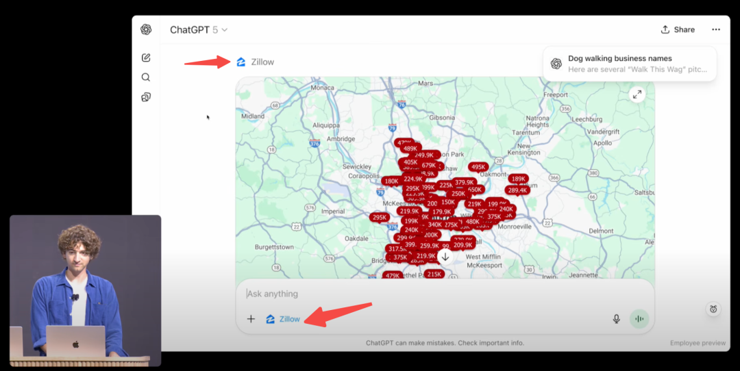 类似的,可以直接在ChatGPT中使用Zillow查询周边房价,并使用Zillow的UI来直接呈现。