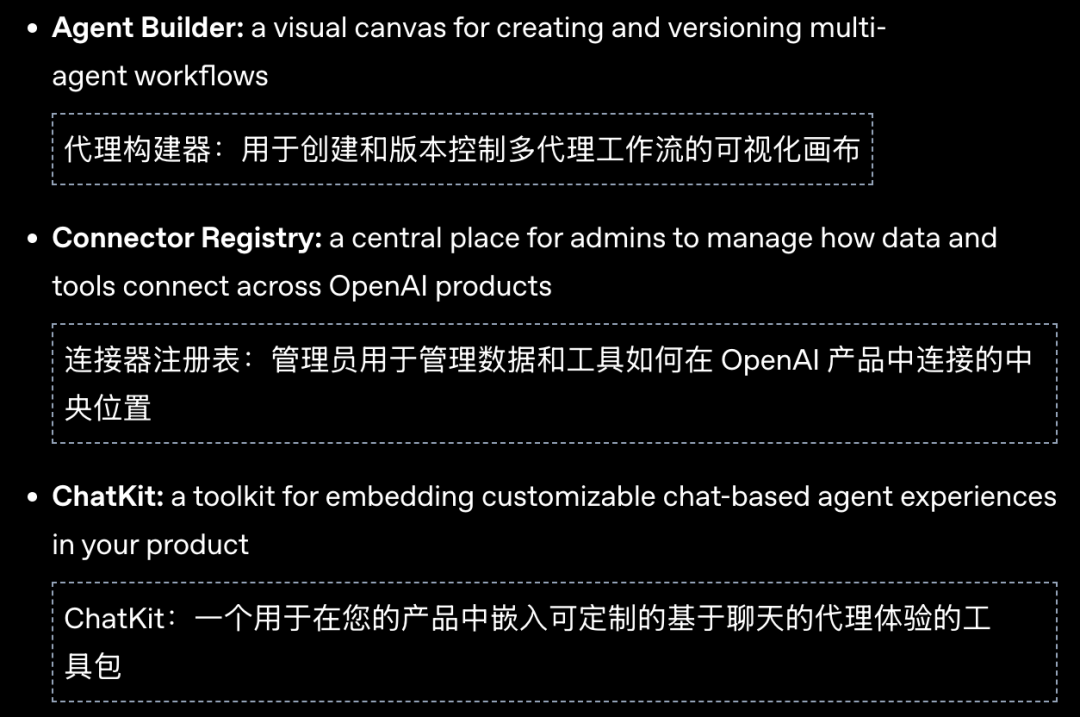 新功能名为AgentKit,是面向开发者和企业的一整套构建、部署和优化智能体的工具。
