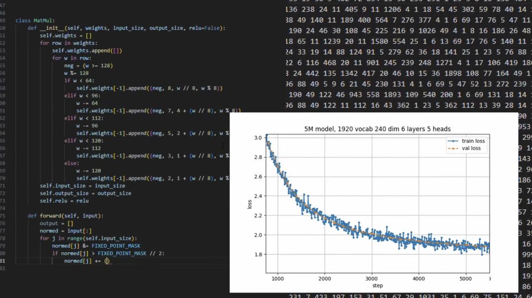 模型本身有 5,087,280 个参数,用 Python 在 TinyChat 数据集上训练,内容都是一些基础英语对话。