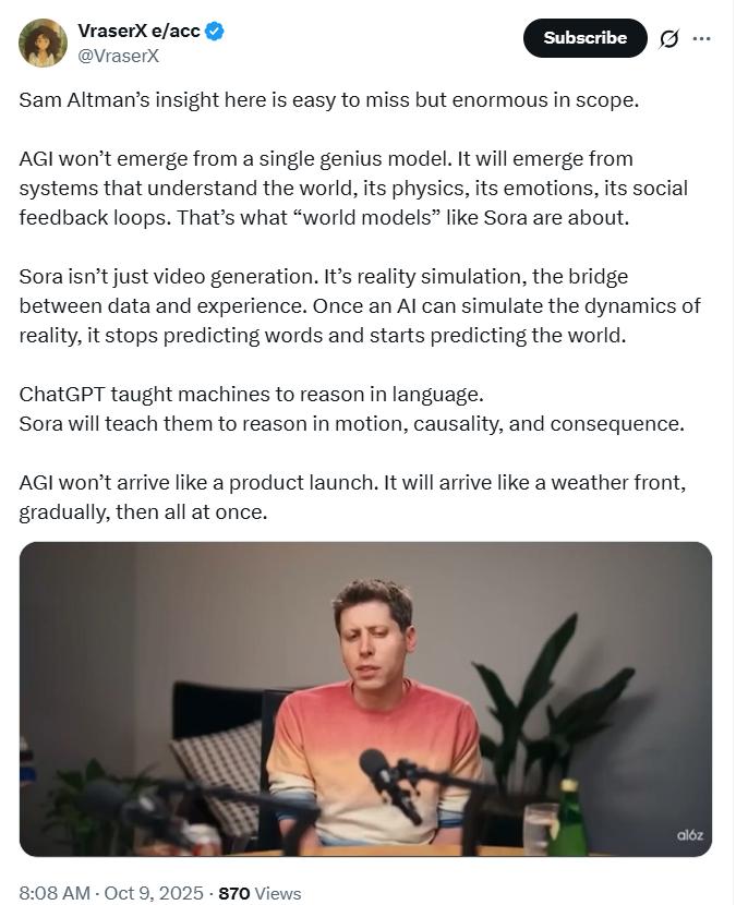 在奥特曼的规划里,Sora并不只是一个视频生成器,而是社会的预演装置。