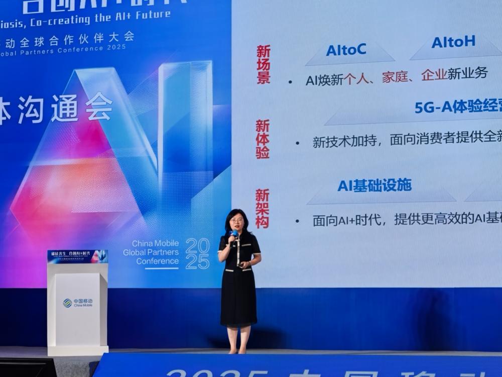 C114讯 10月10日晚间消息(蒋均牧)在数字经济与人工智能交汇的关键节点,中国移动与华为公司长达26年的战略合作正迎来新的高潮。2025中国移动全球合作伙伴大会媒体沟通会上,华为中国运营商市场管理部部长郝晶晶以“一路同行,奔向AI+新时代”为主题,分享了双方在算力基础设施、AI自智网络、5G-A演进与场景化应用等方面的联合创新成果。