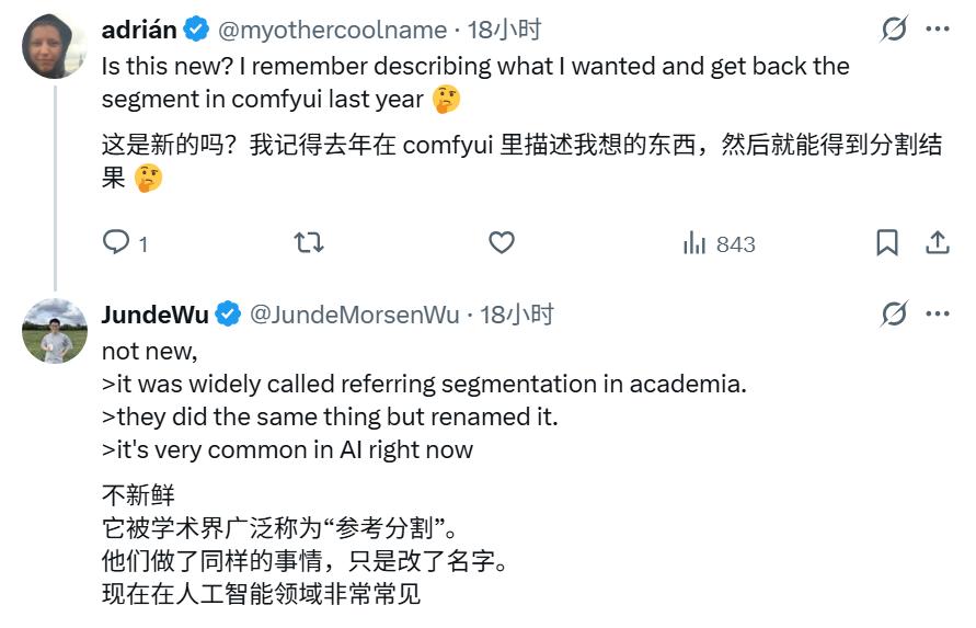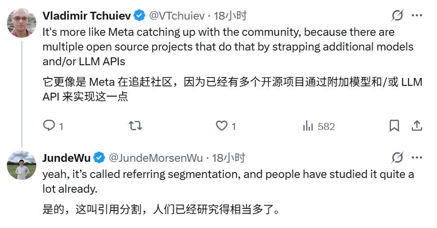 不过评论区也对该工作提出了质疑。有人指出,根据文本描述分割物体的想法并不新鲜,在学术界早已被称为「指代分割」,并且已有相当多的研究。因此,有人认为这项工作只是将一个旧概念「重新命名」和包装。
