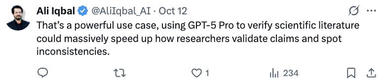 [1]https://x.com/SebastienBubeck/status/1977181716457701775[2]https://x.com/gdb/status/1977153596811804890
