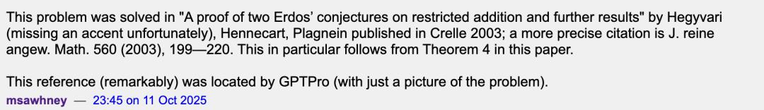 直到最近,有人用GPT-5 Pro检索后才发现,该问题实际在2003年就已被解决了。