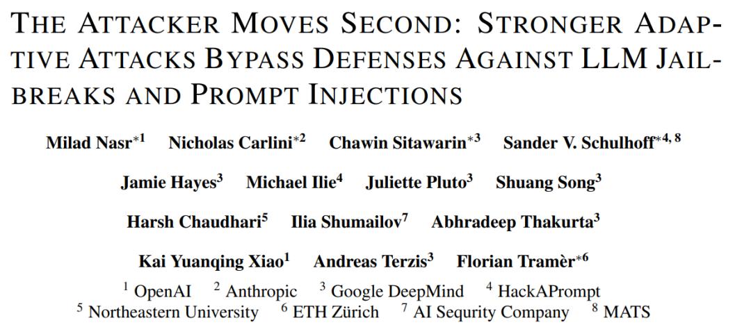 真是罕见,OpenAI、Anthropic、Google DeepMind 这三大竞争对手,居然联手发表了一篇论文,共同研究语言模型的安全防御评估。